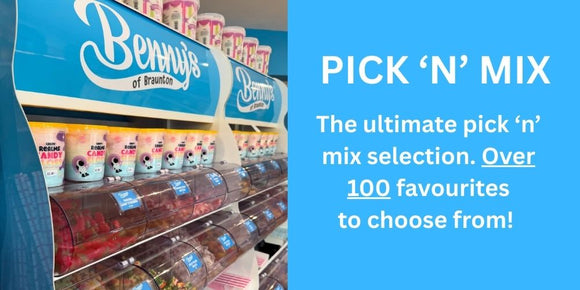 We offer an extensive range of confectionery - not forgetting our ultimate self serve pick n mix selection with over 80 favourites to choose from!